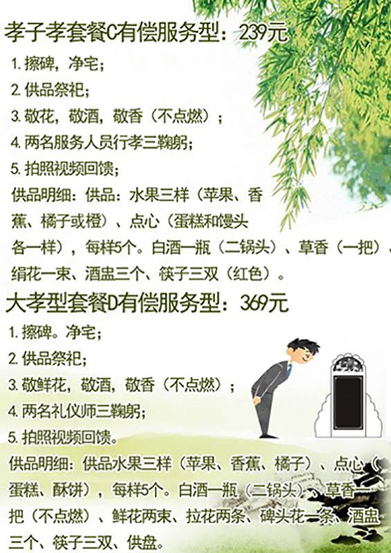 客户只要打电话到我们的服务台,24小时服务热线电话:4006-03-4006,完成相关的确认手续,我们会在当天就完成代祭祀服务。对我们专业礼仪人员全程祭祀过程录相,并转发回放给客户。同时又在沈阳、铁岭、抚顺设有五个办事处,为客户办理咨询、看墓等事宜,可免费接送客户参观选购。